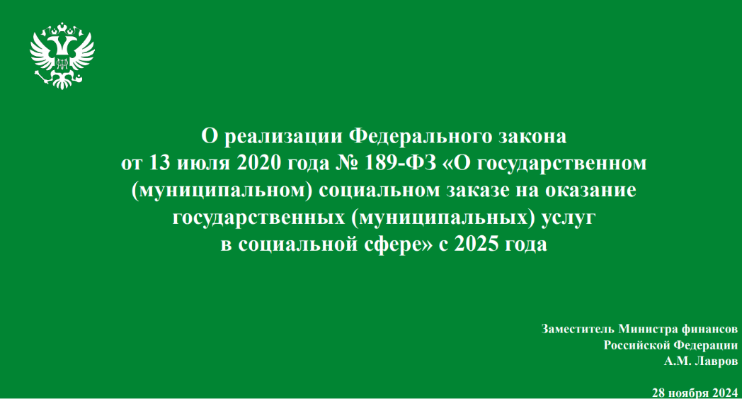 Призентация О реализации Федерального закона от 13 июля 2020 года № 189-ФЗ «О государственном (муниципальном) социальном заказе на оказание государственных (муниципальных) услуг в социальной сфере» с 2025 года